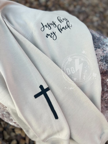 JESUS HAS MY BACK LIGHT CREWNECK- READY TO SHIP